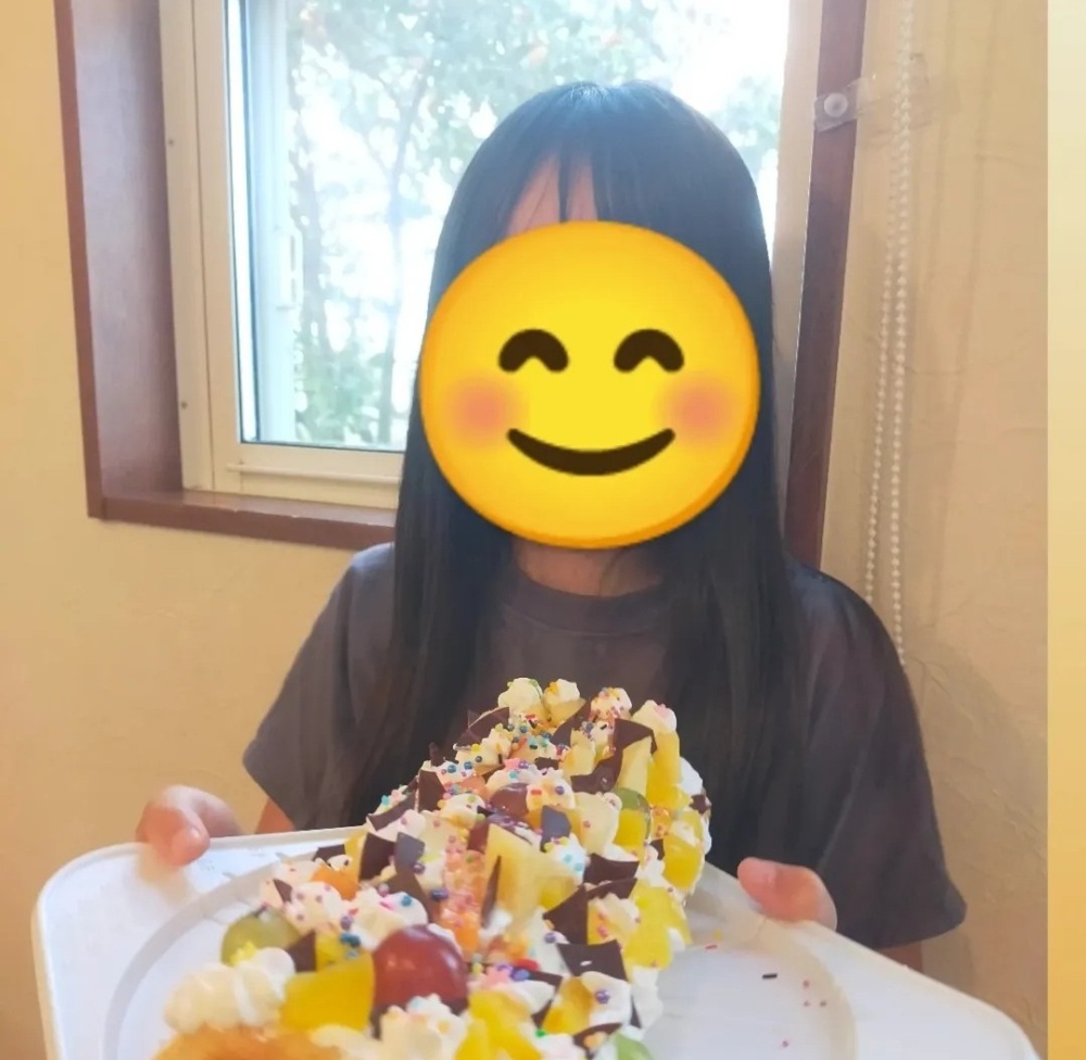 完成したロールケーキは、なんとも彼女らしい😁✨フルーツとチョコがもりもりの華やかなロールケーキになりました✨