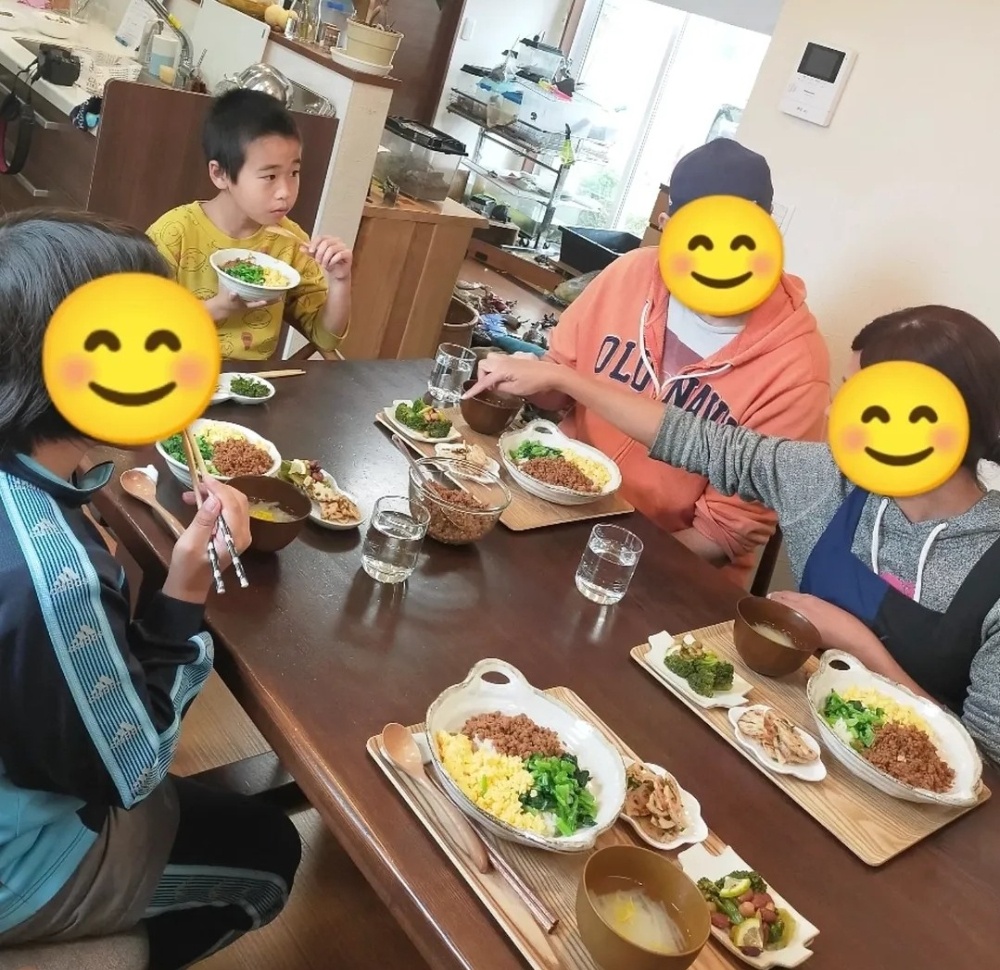 今月のリクエストは、三色丼! 甘辛いそぼろ、美味しいですよね😋