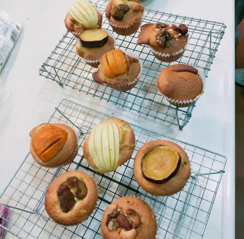 たまたまご希望が、米粉と小麦粉に分かれたので、使う材料は粉以外はほぼ違いのないマフィン生地ですが、粉が違えば全くちがう生地になるので😉
