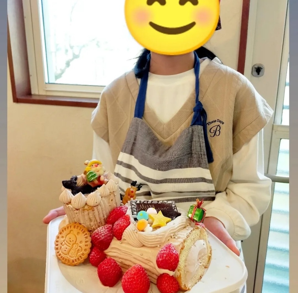 思えば、 切り株を乗せたブッシュ・ド・ノエルを教室で作ってくれたのははじめてでした😊