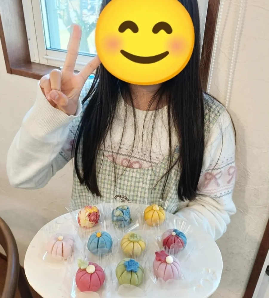 完成した練り切りは、とっても華やかな、可愛らしい色合いのお花練り切りがいっぱい。