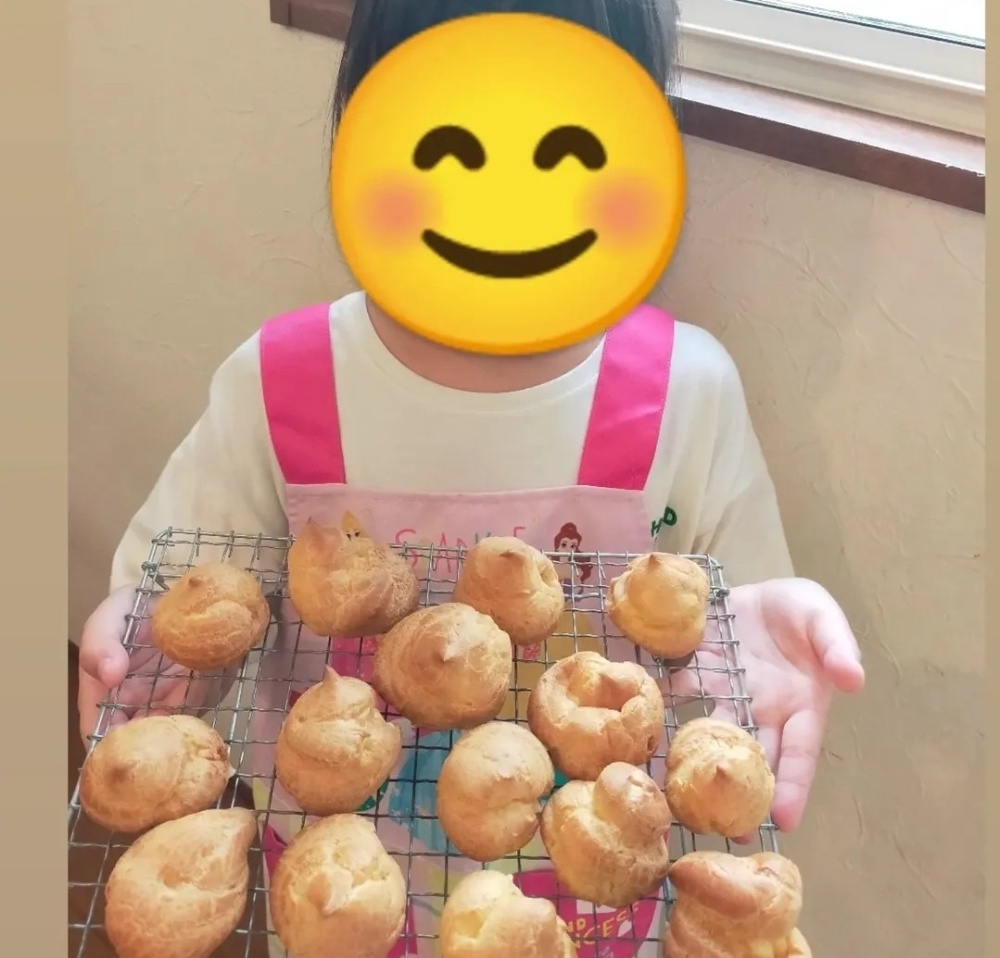 シュー生地作りは、ひたすら混ぜる作業で大人もけっこう疲れる作業なのですが🤣💦