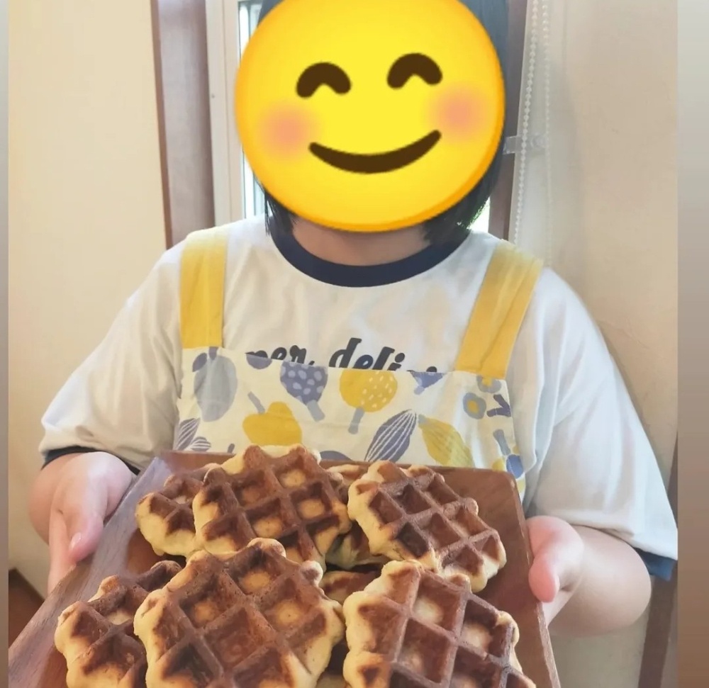 先月のおやつがベルギーワッフルで、食べて気に入ってくれて今回作ってみよう! となりました!