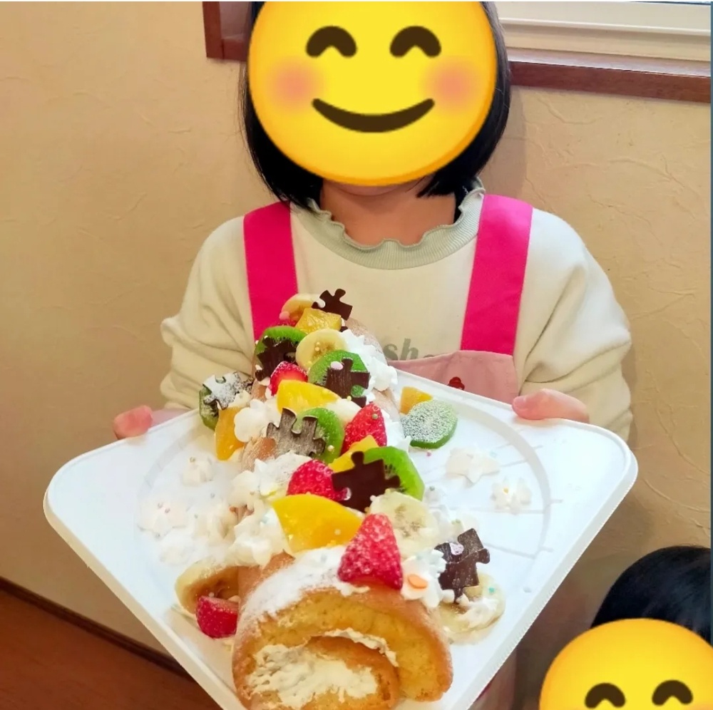 出来上がったロールケーキは、スッキリなデコレーションですが、とってもバランスいい素敵なロールケーキに😁✨