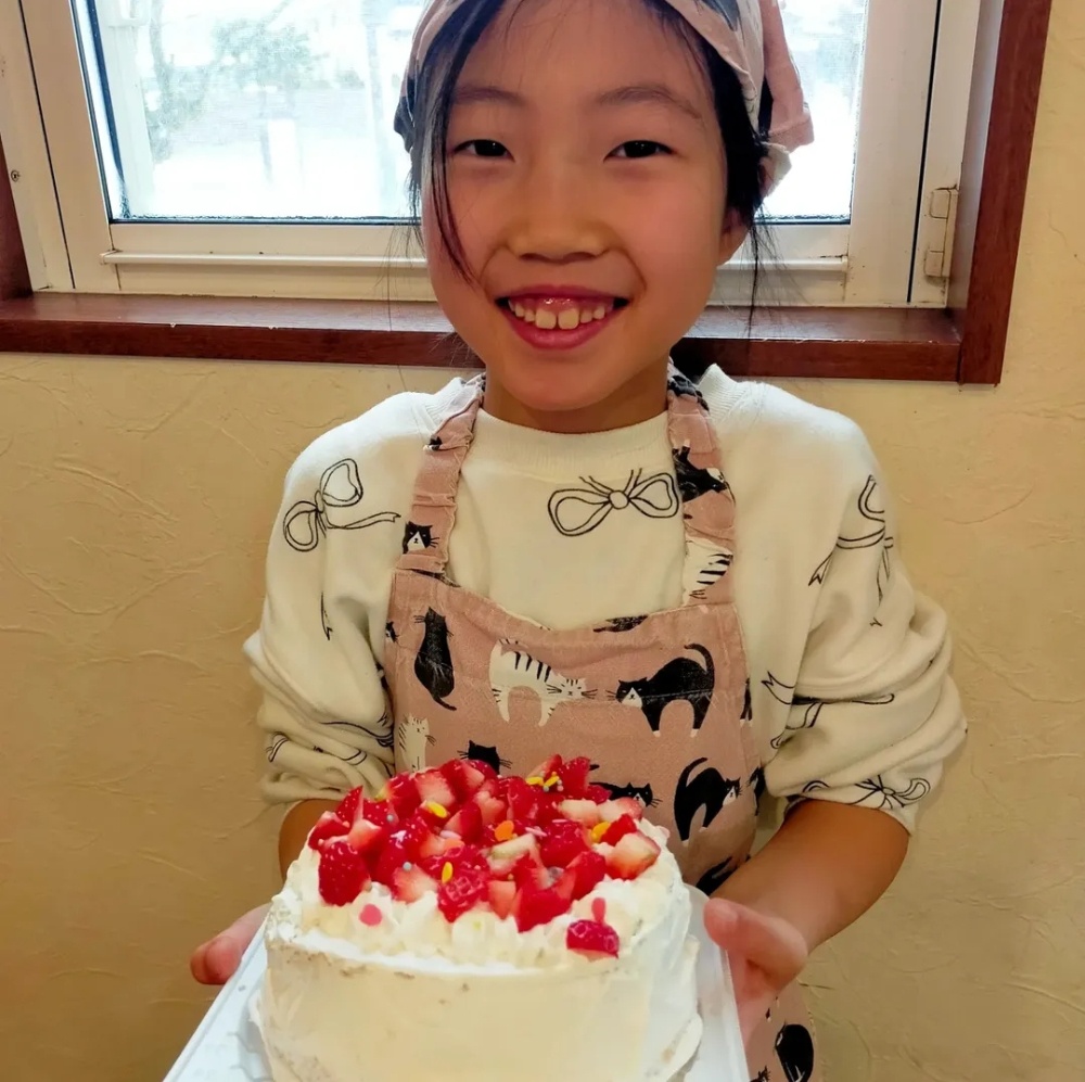 完成したケーキは、なんとも彼女らしい、かわいいケーキに。