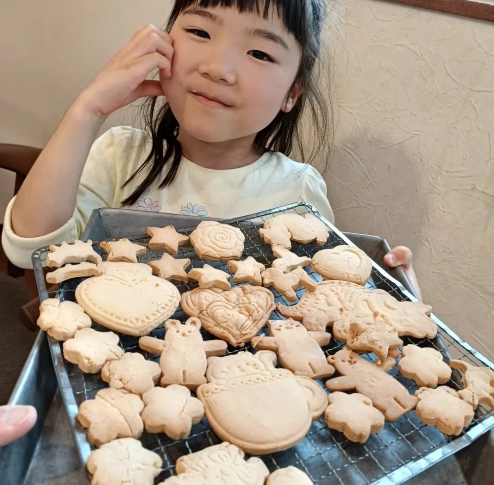 ママさんにもお手伝いしていただいて、全部型抜きもがんばってくれました😆焼き上がったクッキー、パクリと味見してみたら